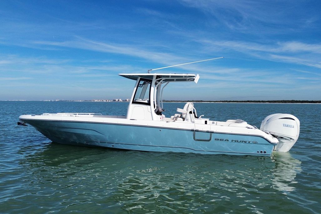 This remarkable 2025 Sea Hunt Escape 28 is a stunning center console boat designed for both performance and comfort. With an impressive overall length of 28.5 feet, this vessel features a robust fiberglass hull with a modified Vee shape, ensuring a smooth and stable ride across various water conditions.