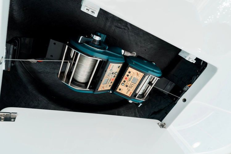 The model packs a lot in a very manageable size with a 3/2 layout, air conditioned flybridge, and great features for longer runs to fish the islands or canyons like a SeaRecovery Aquamatic Water Maker and Eskimo ice chipper.